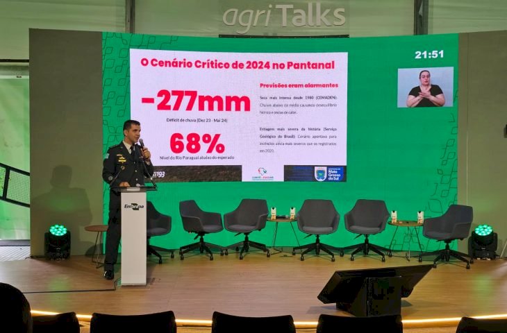 Durante a apresentação, ele destacou os desafios decorrentes da seca extrema, a urgência da situação em 2024 e a perda histórica de superfície de água no Pantanal.