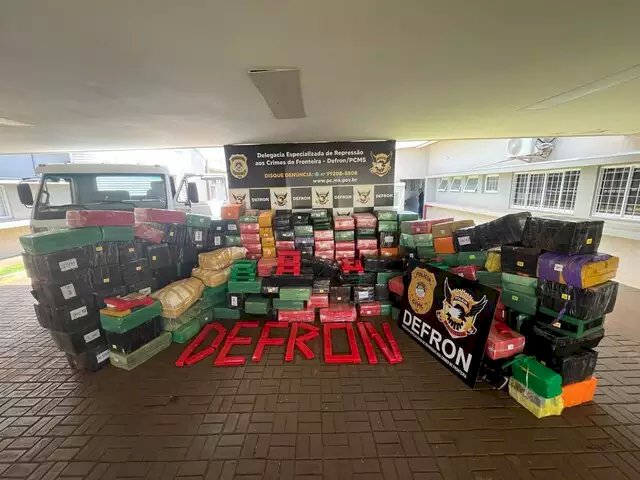 — 1609Equipe da Defron (Delegacia de Repressão aos Crimes de Fronteira) apreendeu, na madrugada desta sexta-feira (5), cinco toneladas de maconha em um galpão no Bairro Jardim Rasslem, em Dourados, cidade a 251 quilômetros de Campo Grande. A droga seria enviada para São Paulo.