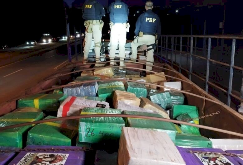 Carreta carregada com armas e mais de 26 toneladas de maconha é apreendida na MS-295