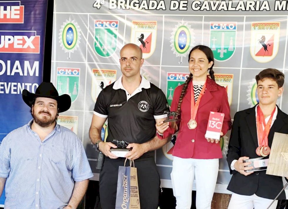 Vaniely, que tem penas 13 anos e é aluna da Hípica São José, localizado na Vila Santo Antônio, que tem a frente o professor e campeão brasileiro de hipismo, o oficial da reserva do Exército Brasileiro, Jair Gomes da Silva, participou da competição em Dourados, que aconteceu sábado (5) e nesse domingo, dia 6 de abril, montando o cavalo Nortenho da Vista, da Hípica São José.