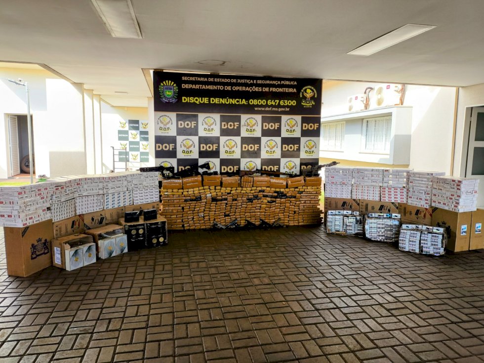 — 631O DOF (Departamento de Operações de Fronteira) apreendeu nesta quinta-feira (24), em Ponta Porã, quatro veículos carregados com drogas, cigarros, pneus de origem estrangeira, cigarros eletrônicos, perfumes e armas de airsoft. Esta é a terceira ocorrência, em menos de um mês, que comboio com drogas e contrabando é interceptado pela Unidade na fronteira.